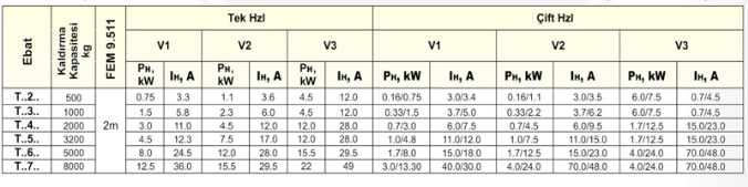 HALATLI VİNÇLERDE KULLANILAN KALDIRMA MOTORLARIN ÖZELLİKLERİ